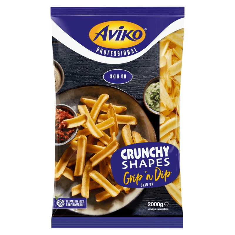 Grip 'n Dip Skin On U-shaped fries have a homemade look and are perfect for dipping! The coating keeps them warm and crunchy for a longer period and makes them suitable for delivery and takeaway menu.