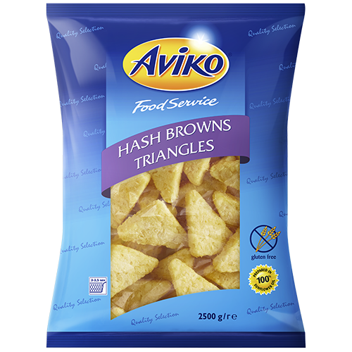 Hashbrown triangles pre-fried in sunflower oil, quick-frozen. Aviko's rang of hash browns for use in catering and foodservice give chefs and caterers a flexible range of productions