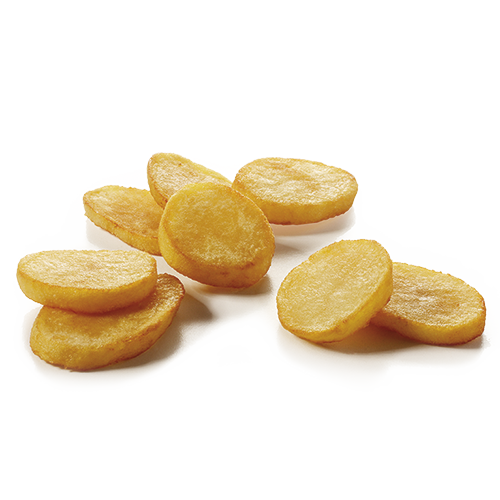Potato slices, pre-fried, quick-frozen.