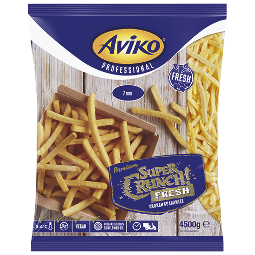 Super crunchy chilled fries, pre-fried in sunflower oil. Thanks to the fine rice flour coating, they retain their heat and crispness for longer, making them ideal for takeaway and delivery menus.