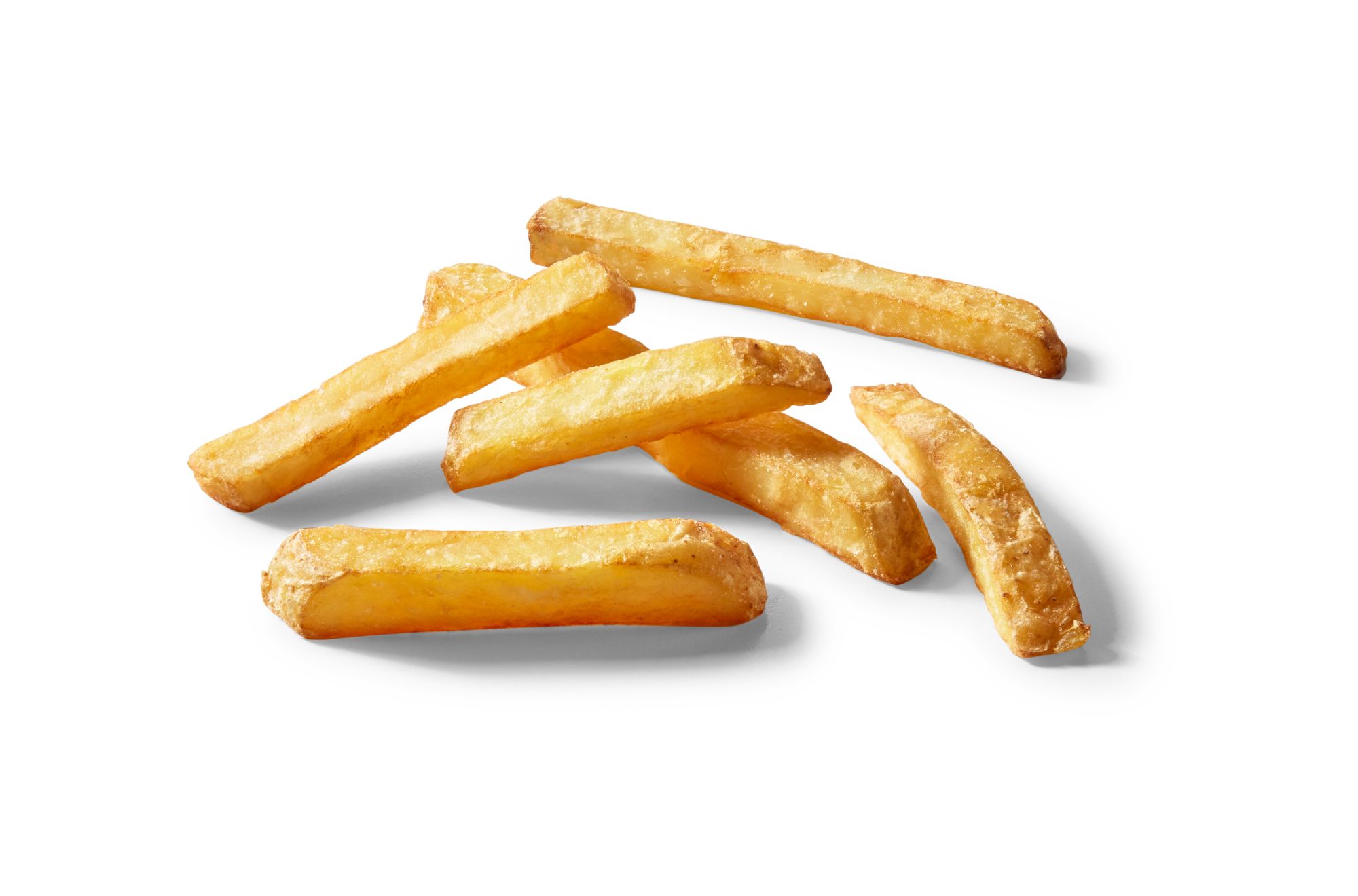 Skin on fries with mixed cut sizes for that appealing homemade appearance with a crispy coating that keeps them hotter for longer.