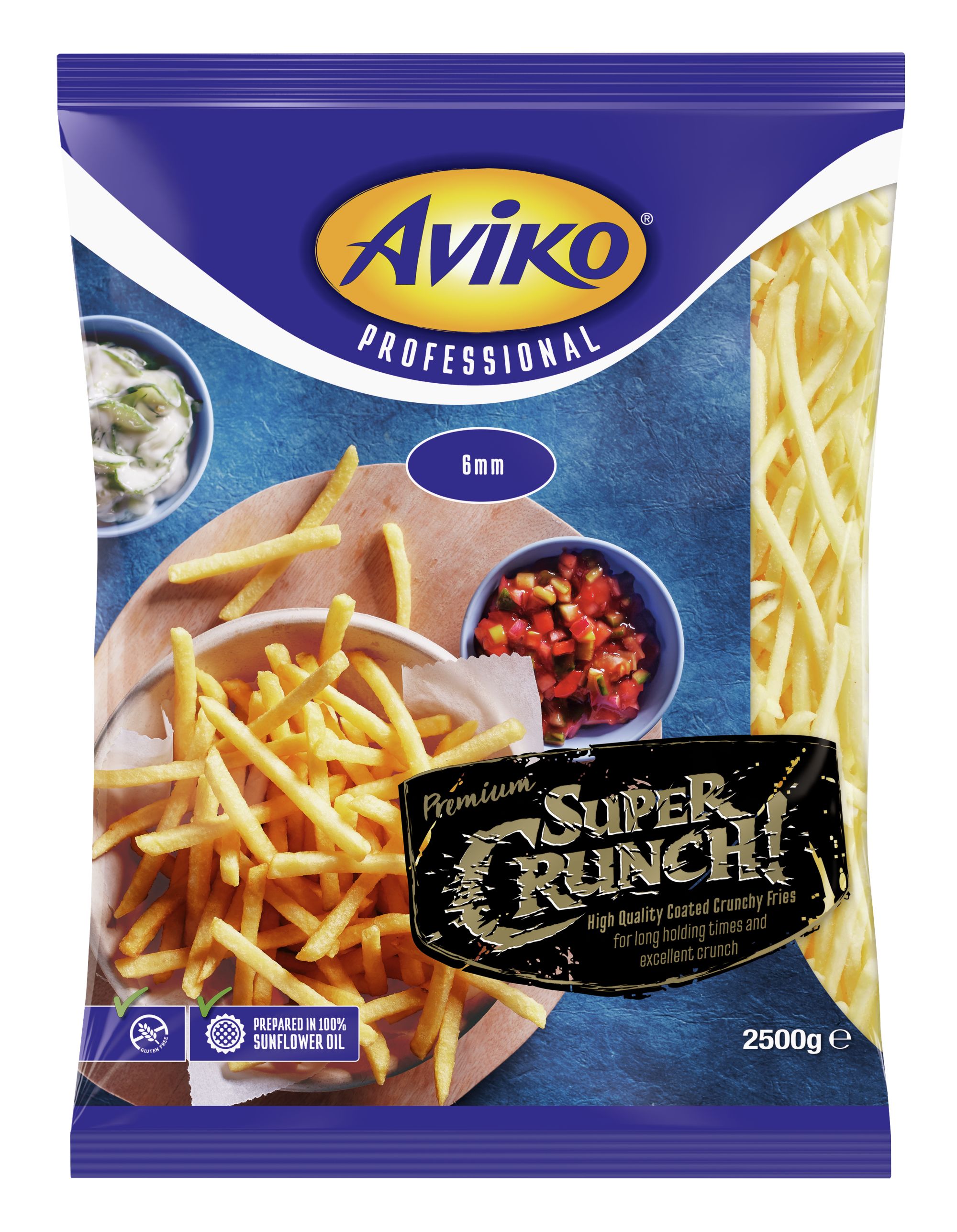 Extra thin and crispy coated fries (gluten-free coating), pre-fried in 100% sunflower oil and quick-frozen.