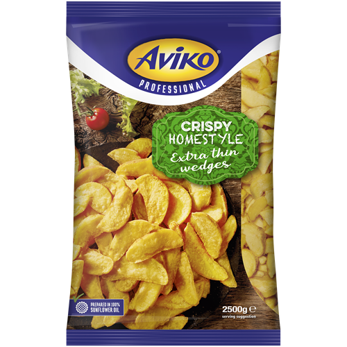 Crispy Homestyle Extra Thin Wedges are a chef’s secret weapon. Their rustic look, unique thin shape, and irresistible crunch make them a must-have for any chef’s kitchen.