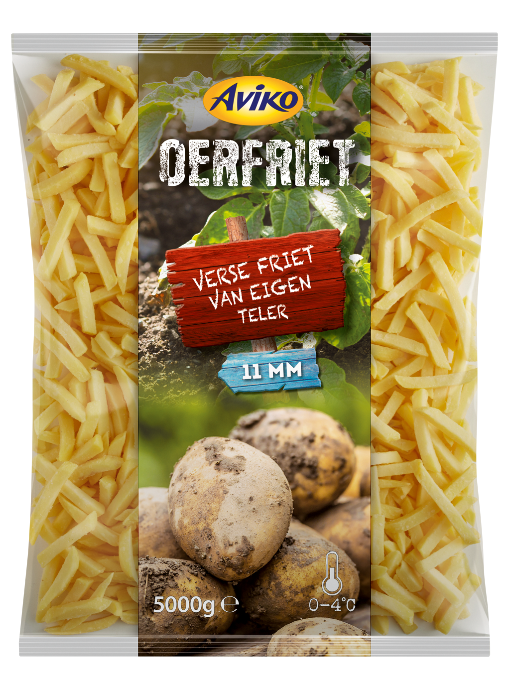 Aviko Oerfriet 11mm – Rustic, homemade-style fries with a rich potato flavor and extra crispiness. Made from premium Dutch Agria potatoes